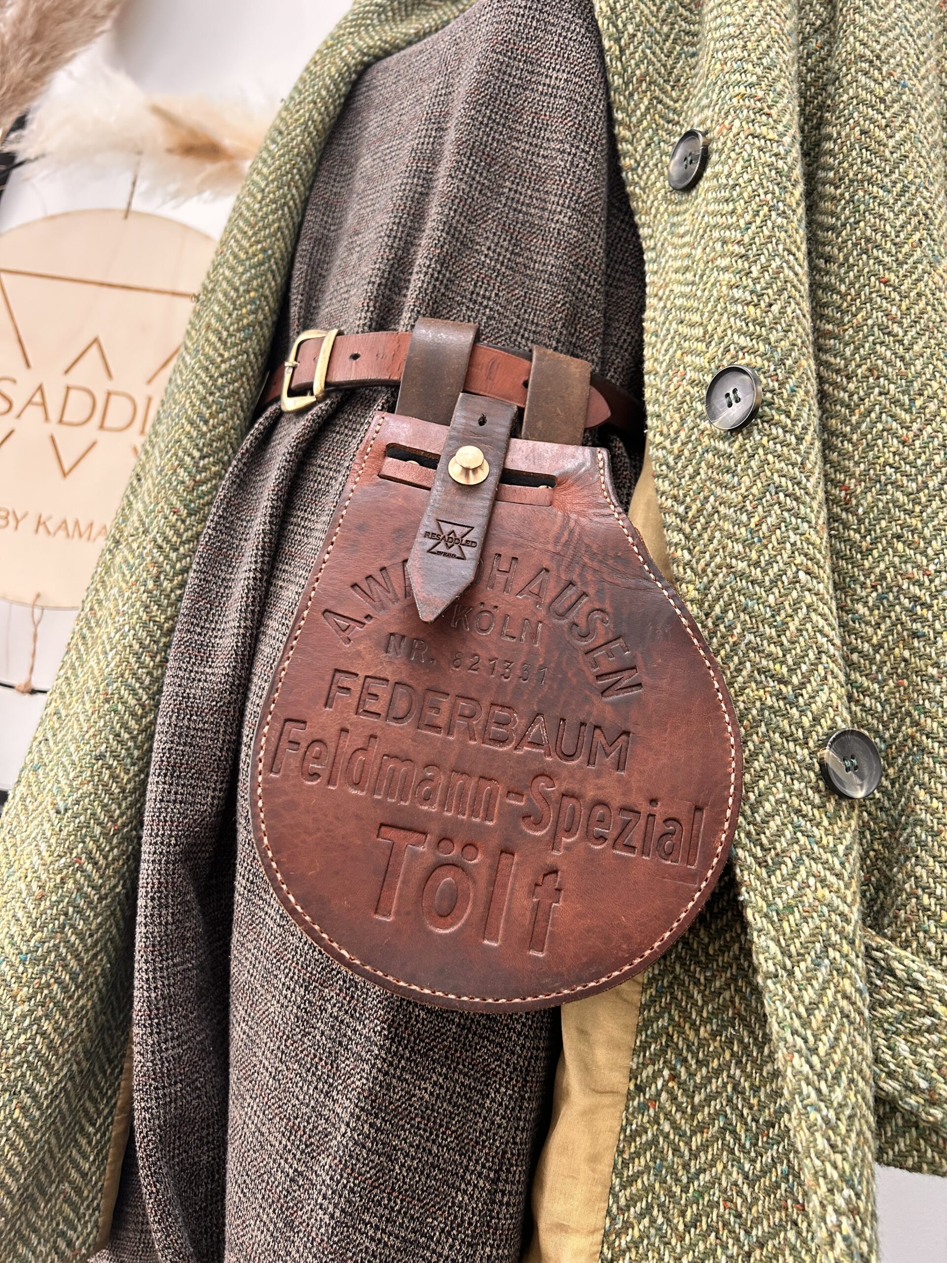 Diese Tasche ist das absolute authentische Accessoire für Reiter und Pferdefans. Sie ist aus dem Deckblatt eines Sattel gefertigt und kann entweder als Gürteltasche oder Umhängetasche getragen werden.